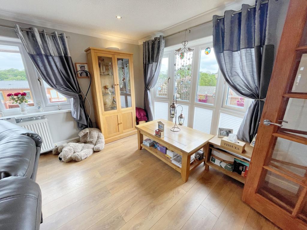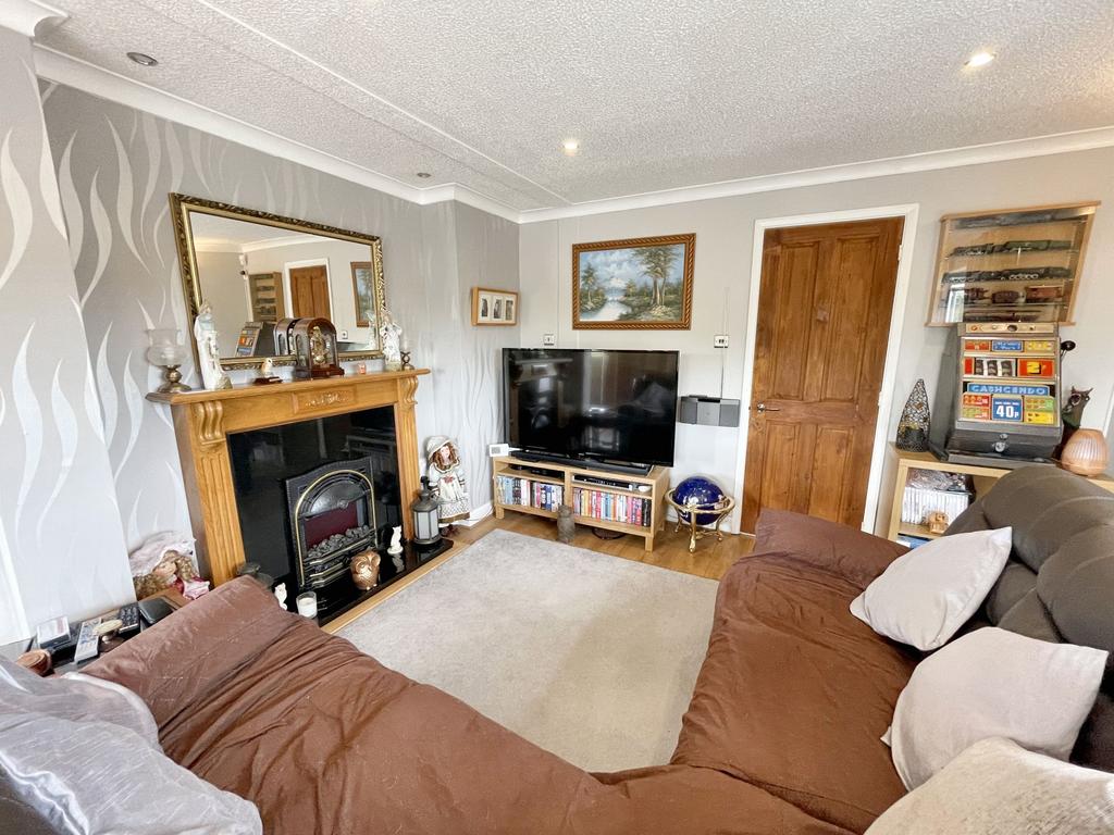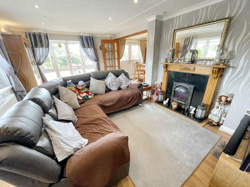 Spacious living room with double aspect windows and bi folding doors into the dining room. Electric fireplace feature and gas centrally heated radiator.