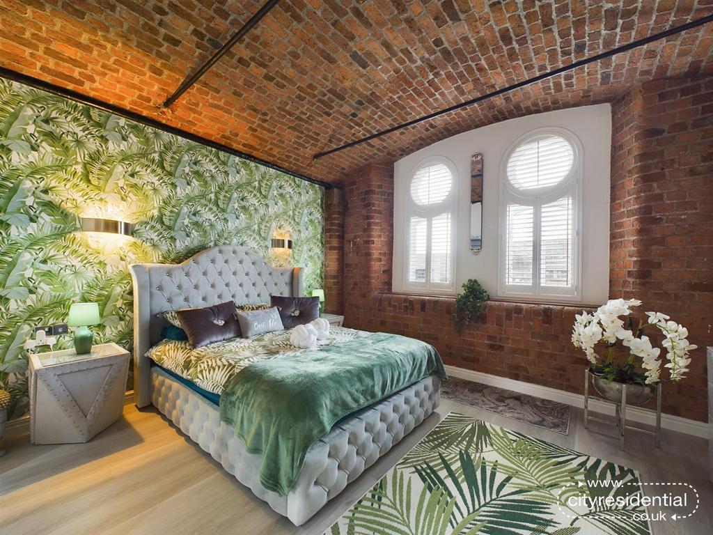 As you step into the entrance hall, the stairway is adorned with a stylish glass balustrade, which upstairs leads to living space, kitchen, 2nd bedroom & family bathroom. Downstairs you will find the master bedroom with ensuite. The master bedroom with views across the docks & River Mersey benefits from large fitted wardrobes, occupying a dressing area & also offers a sleek & luxurious ensuite bathroom. To the upper floor, a glamorous living & dining area awaits, where the brick barrel vaulted ceilings will really take your breath away, alongside the views across the docks & River Mersey. The separate kitchen, ultra-modern with high gloss white fixtures, is fully integrated with a microwave, dishwasher, oven, hob, washing machine & fridge freezer - everything here ready to go at your fingertips. Leading down the hallway, the property benefits from a 2nd large fully tiled bathroom, giving a contemporary feel with high gloss units in addition modern fixtures & fittings. The 2nd large double bedroom benefits from the same character features seen throughout of brick barrel vaulted ceilings, whilst large fitted wardrobes offer ample storage facilities.