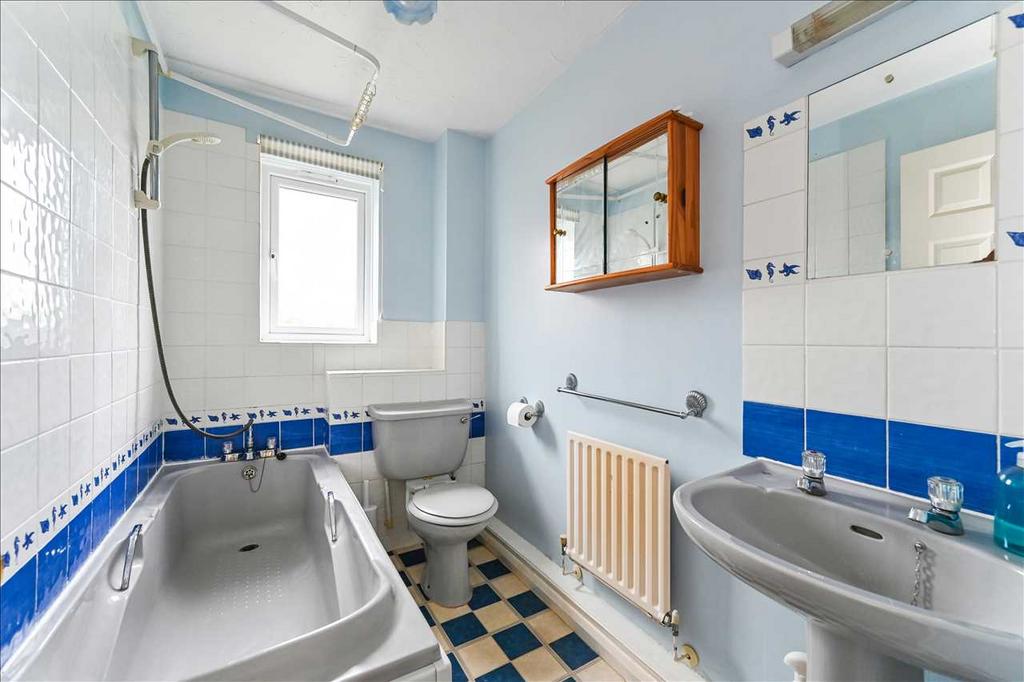 Ascending to the first floor, you will find access to two well-proportioned bedrooms. The master bedroom is particularly notable, featuring a fitted wardrobe that provides generous storage space. The second bedroom offers flexibility, ideal as a guest room, home office, or additional sleeping area. The first floor also accommodates a bathroom, which includes a bath with a mixer tap and shower attachment, a low-level W/C and a wash hand basin.