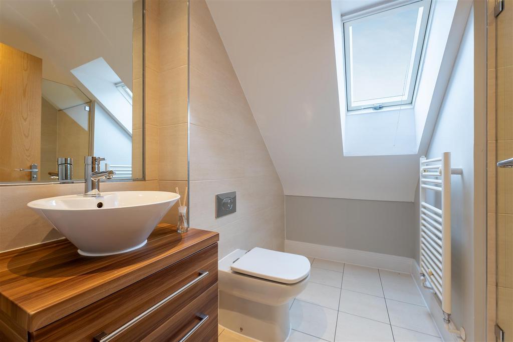 On the second floor is the principal bedroom with built-in wardrobes and an en suite.