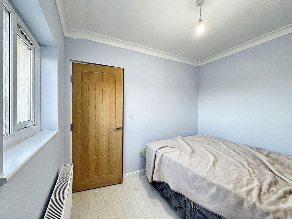Second double bedroom with a double glazed window to the rear aspect, wood flooring, radiator, and coved celling