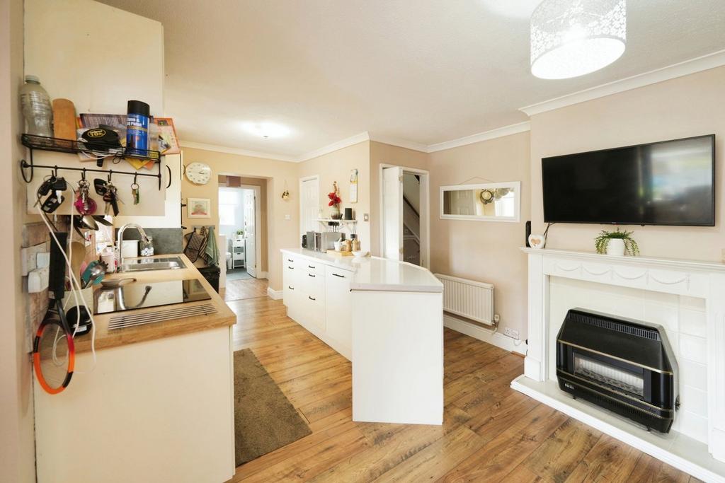 Entrance Hall - The front uPVC double glazed entrance door opens to the hall, with wood laminate flooring, the carpeted staircase leading up to the first floor landing, an understairs storage cupboard, a radiator and access to the lounge and the kitchen/dining room.