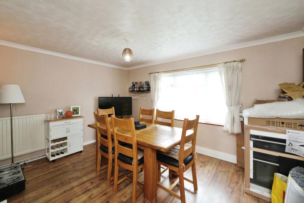 Sitting/Dining Room - Providing ample space for either living or dining furniture with a front aspect double glazed window, wood laminate flooring, a recessed closed fireplace and a radiator.