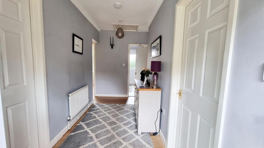 RECEPTION HALL (4.05m x 1.67m approx) (13'3" x 5'5" approx) with wooden floor, radiator, coving, two power points and ceiling hatch to the loft space with part boarding and the gas fired central heating boiler.