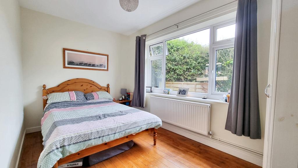 BEDROOM 2 (3.93m x 2.62m approx (12'9" x 8'6" approx) with wooden floor, coving, rear window, radiator, built-in double wardrobe and four power points.