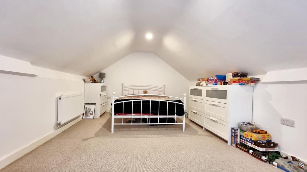 BEDROOM 3/STUDIO ( 6.21m x 3.10m )(20'4" x 10'2" approx) with window, radiator, ten power points, under eaves storage areas and potential for one or two Velux Skylight windows if desired.