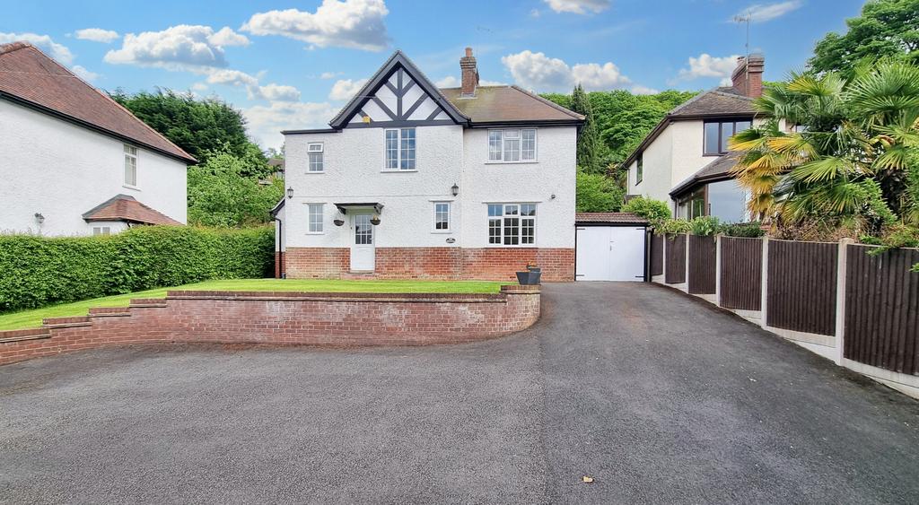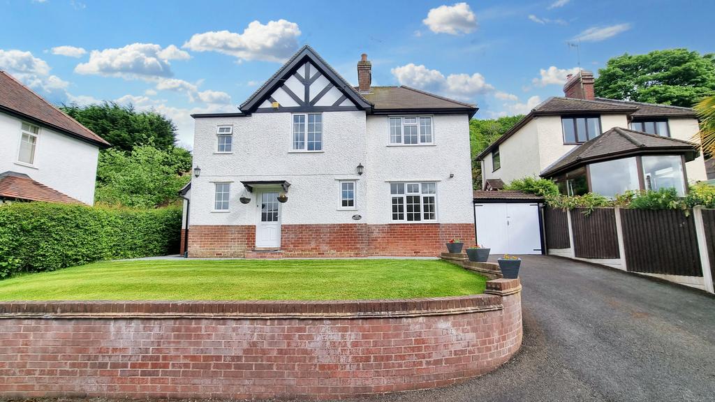 It stands well back from the road with a large tarmac drive and forecourt with brick retaining wall and lawn area.