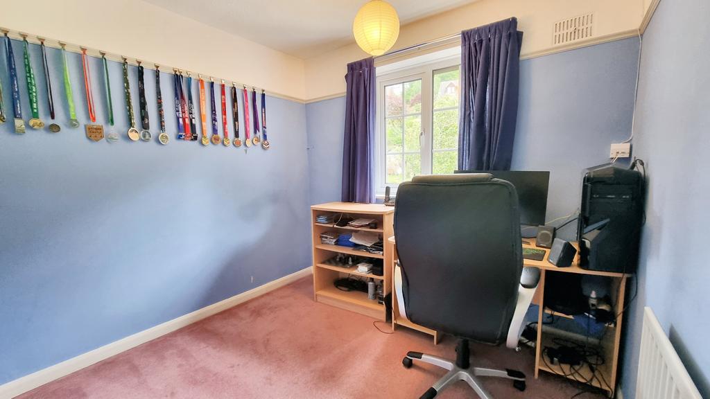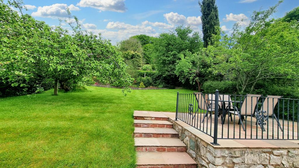 There is a single link garage and rear gently sloping gardens with patio area, steps ascending to the lawn area, gravelled area and paved terrace with wrought-iron railings. There are established boundary hedges, apple tree and shrubbery beds.