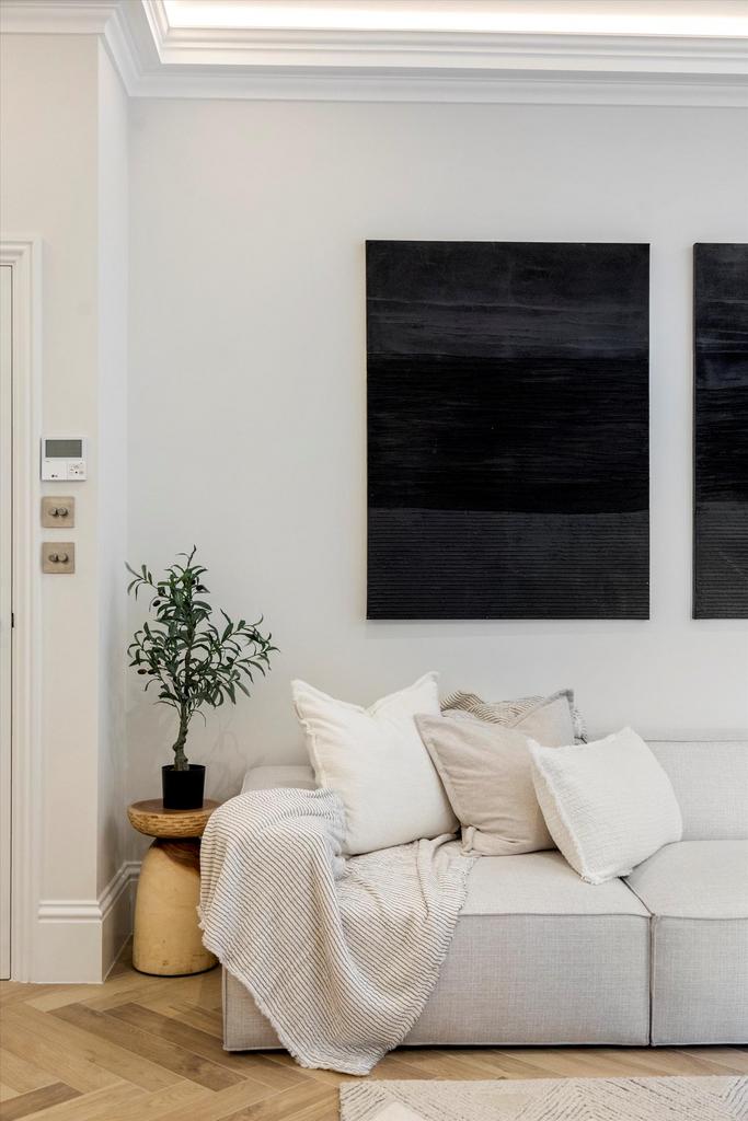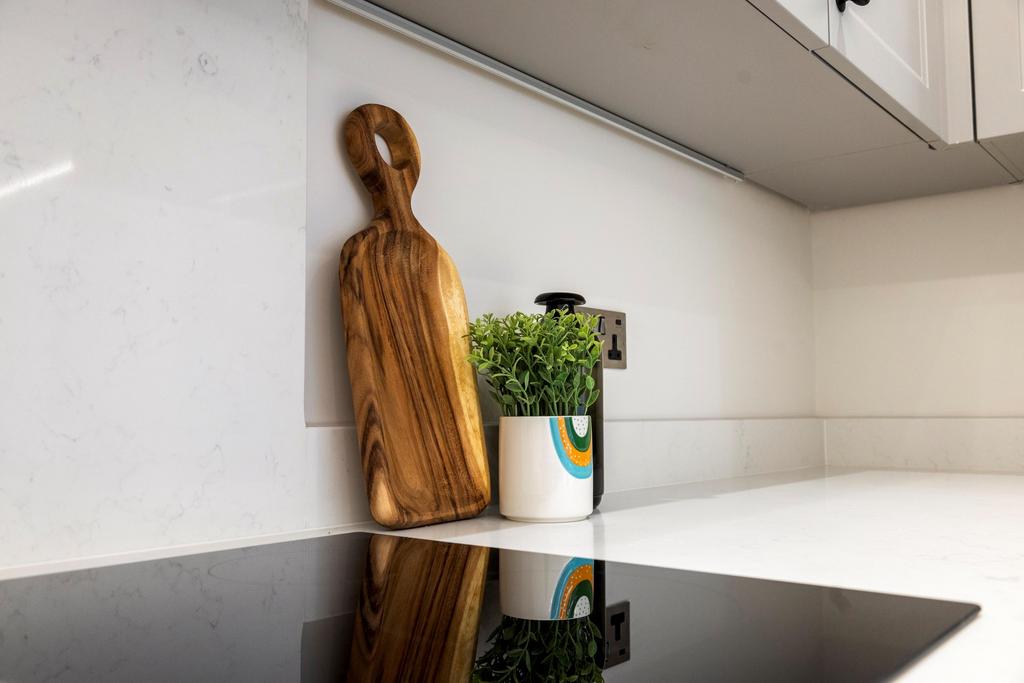 As you enter the porcelain tiled hallway, you will come across a bathroom and a storage cupboard. Off of the hallway is a principal bedroom with two sets of built in wardrobes and the open plan kitchen/living room. The modern shaker style kitchen features stone worktops, integrated appliances and a Quooker tap. The living area features an east facing Juliet balcony.