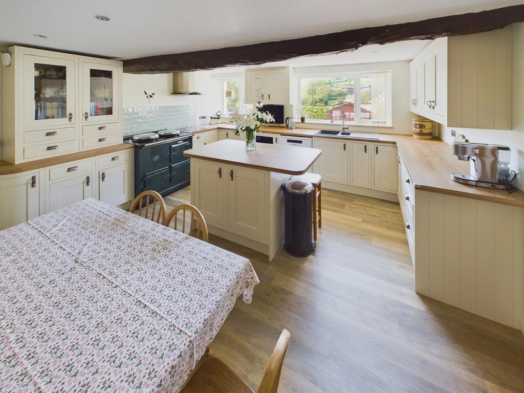 The main house of Badgers Brook is not just a residence; it’s a sanctuary. As you step inside, you are greeted by a spacious hallway that branches off to various living spaces, including a cosy dining room and a versatile games room. With its soothing ambience, the sitting room leads to a stunning shaker-style kitchen. This culinary space is fitted with a central island. Part of the sale is a magnificent programmable electric Aga, adding a touch of rustic charm to modern cooking amenities.