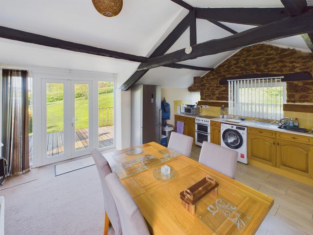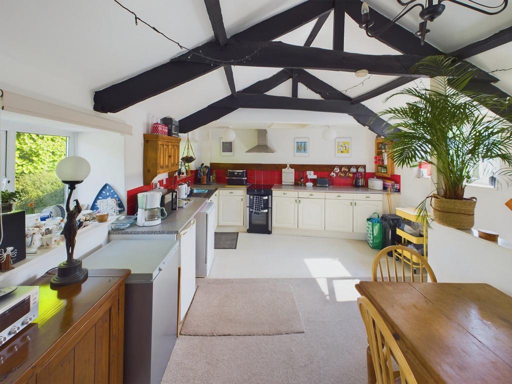 From the main property is a connecting door to The Scypen, pronounced “Shippen, an old Devon word. The Scypen is currently used as part of the main house. It could be a fully equipped one-bedroom unit. It has a private entrance accessed via its own driveway. It has a living/kitchen/dining room offering dual aspects and privacy. There is also a bathroom with a separate WC. The space is perfect for guests and extended families.