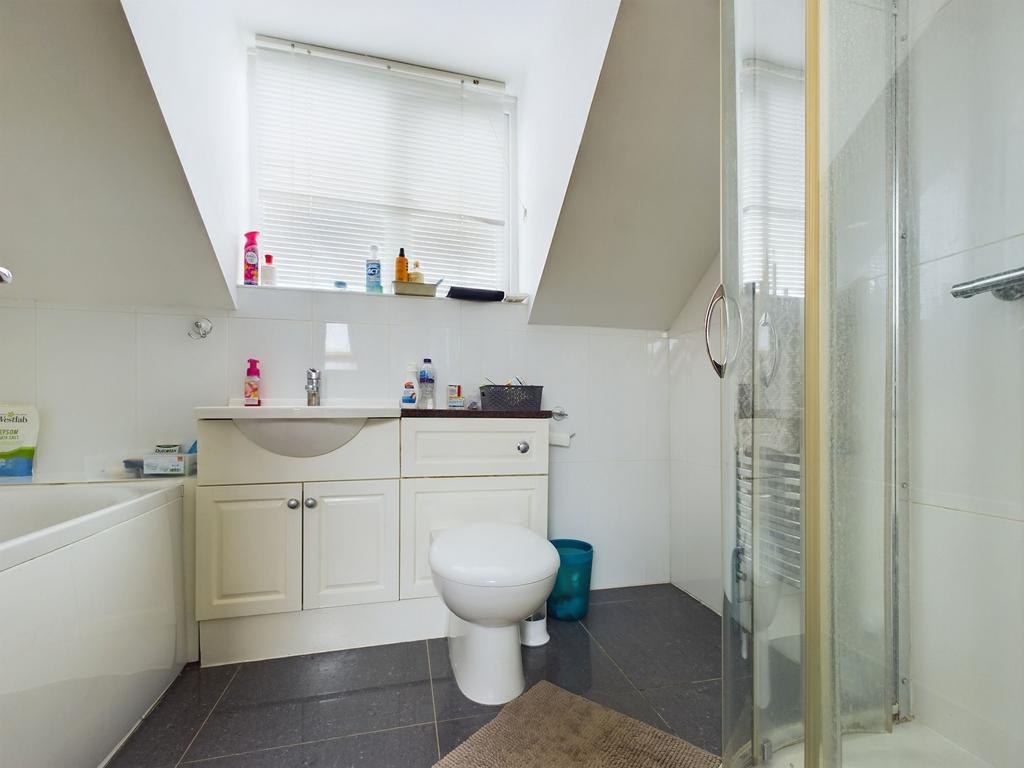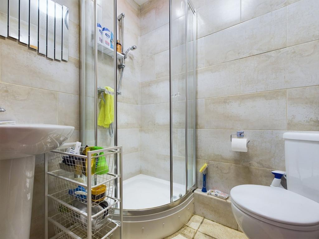 The bathroom is fitted with a white four piece suite comprising corner shower, panelled bath, wash hand basin and close coupled WC. There is a window to the rear, tiled flooring and surrounds as well as a chrome heated towel rail.