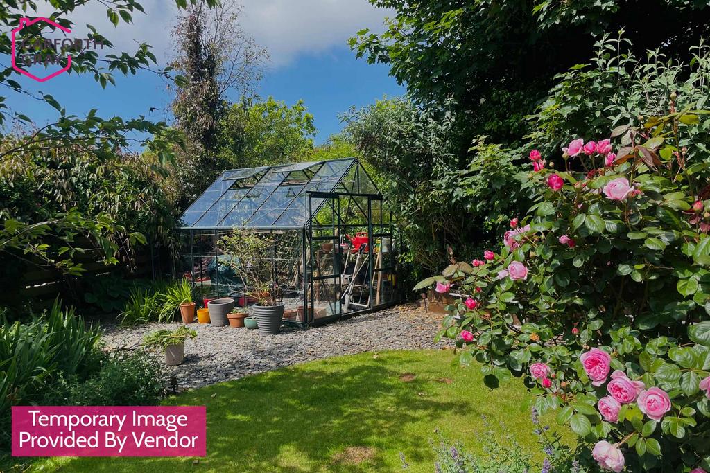 - Landscaped rear garden mainly laid to lawn with garden store, summer house and greenhouse