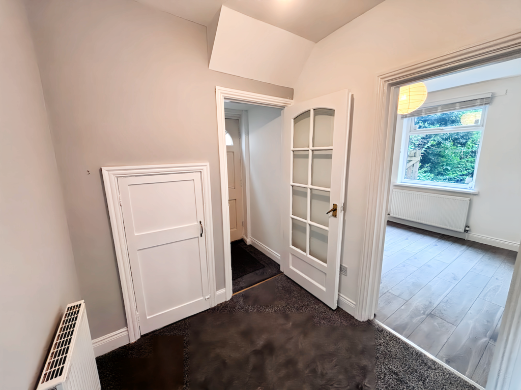 Back inside, the bright modern bathroom is tiled and features a 3-piece suite including shower over p-shape bath and a heated towel ladder. The property benefits from two double bedrooms, one to the front and one to the rear. The property’s elevation, bay window to the front and open-plan living space allows for plenty of natural light to fill the space. Finished and decorated to a high standard, there is gas central heating and double glazing throughout.