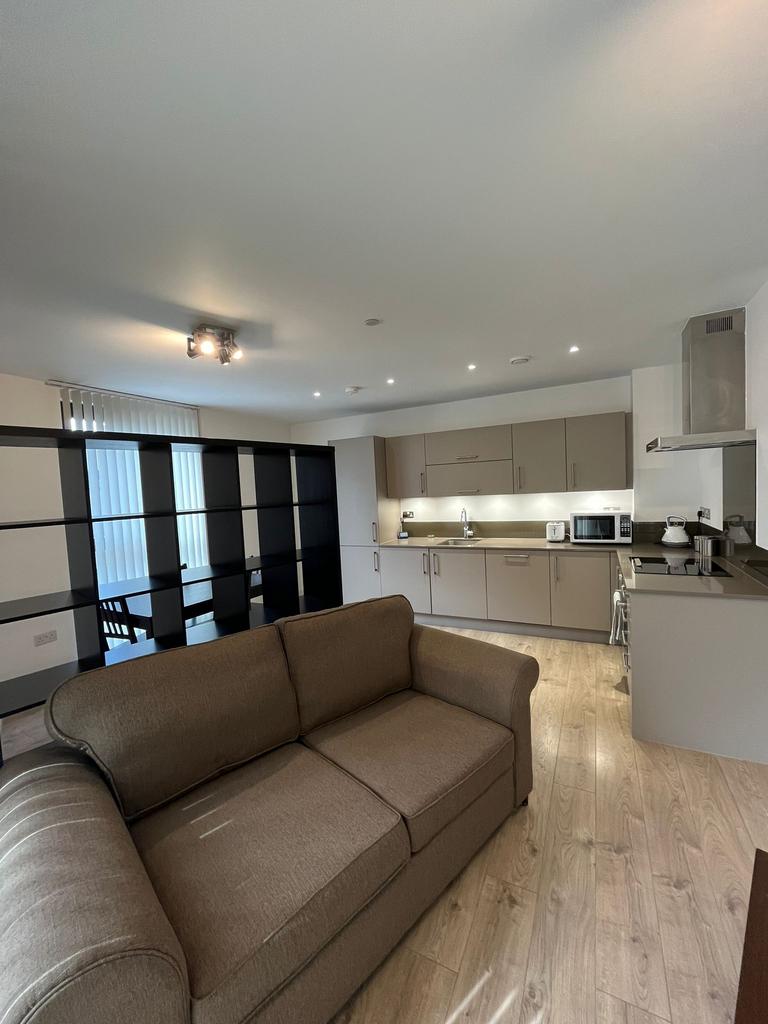 This apartment is set on the first floor of a recently built modern development situated close to all the local transport links and amenities. Offered fully furnished featuring an Open plan lounge with modern fully equipped Kitchen with Patio Balcony. One double bedroom and one bathroom. The apartment is decorated neutrally throughout, finished with wood laminate and carpet flooring and modern fixtures and fittings, also benefits from large double-glazed windows which draw in ample natural light and keep the property warm and bright.