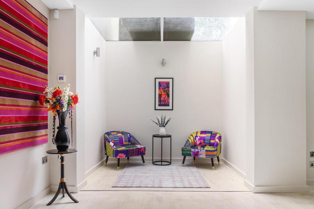 The cleverly designed basement is accessed via a wide staircase and boasts exceptional ceiling height. This level comprises a versatile gym/bedroom 6 with en suite bathroom, an office, a utility room, a WC, and a generously sized cinema room. Additional features of this exquisite home include replacement double glazed sash windows throughout, air conditioning, and underfloor heating on all floors.