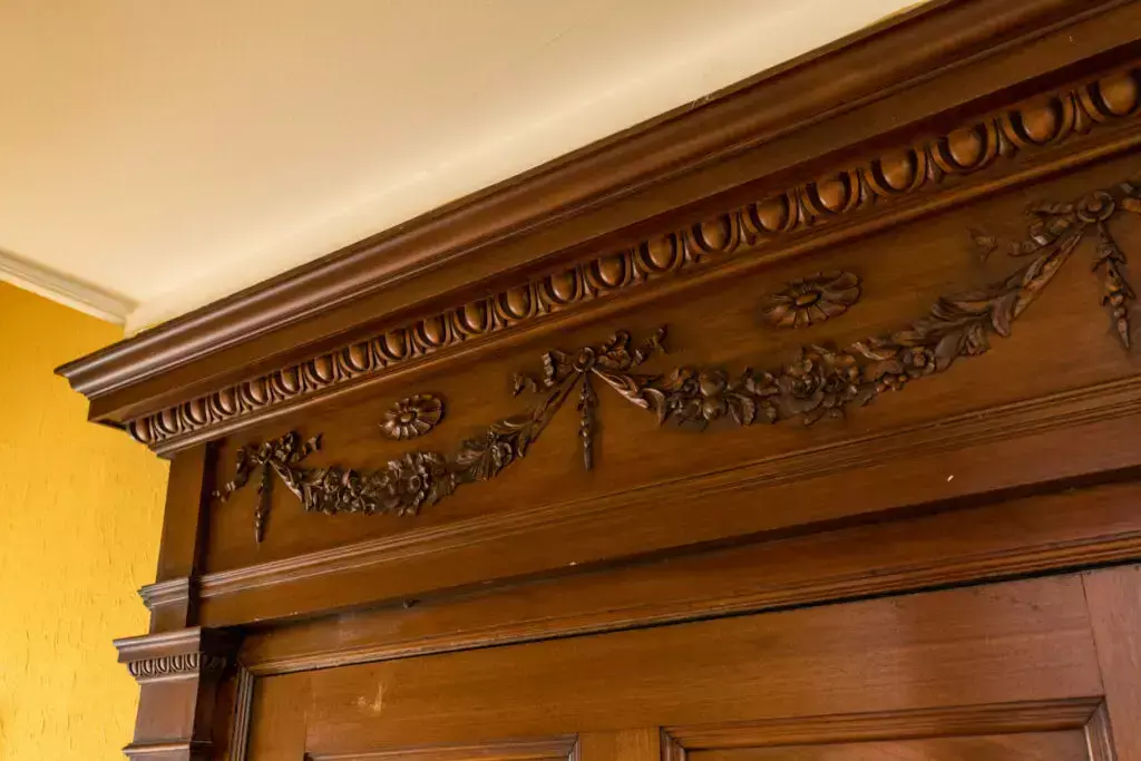 A characterful, well maintained entrance to this elegant Victorian townhouse with beautiful wood carved features leading up to first floor entrance.