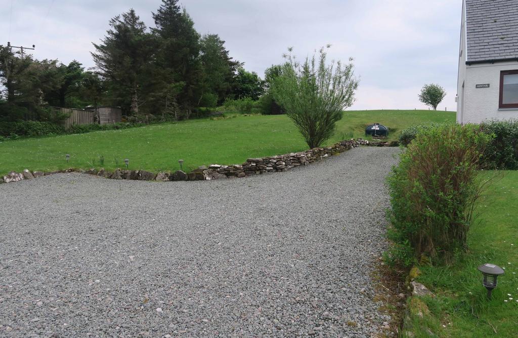 The generous fully fenced garden grounds are accessed directly from the township road, gated access leads to chipped off-road parking for several vehicles and ample space for the erection of a garage when all permissions are in place. The garden grounds extending to some 1 acre (to be confirmed by Title Plan) are laid mainly to grass with some mature planting and enjoy views of Broadford Bay.