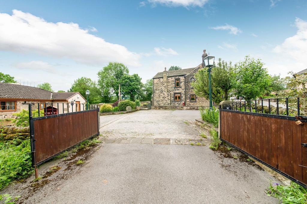The property sits in a lovely corner plot position with generous gardens. Twin timber and iron gates open onto cobbled and tarmac driveway providing parking for numerous vehicles and turning circle with perimeter dry stone walls and additional personal gate. Immediately behind the home there is a low maintenance flagged seating area with Yorkshire stone. The area is fully enclosed with perimeter fencing, beyond which there is a mature lawned garden with perimeter dry stone walling and the garden offering an array of plants, shrubs and trees offering colour throughout the year.