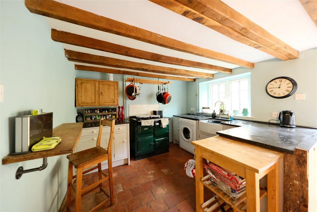 As you enter Holly Cottage, you're greeted by a warm and inviting living room. Original exposed beams and stone walls create a sense of history, while the wood-burning stove set within a traditional fireplace provides a cosy focal point for the room. Large windows allow natural light to flood the space, enhancing its bright and airy atmosphere. The heart of the home, the kitchen, exudes rustic appeal. Featuring hand made clay tiled flooring, Belfast sink set in antique wood surround, plumbing for automatic washing machine, oil-fired Rayburn doubles as a boiler for heating and water but not needed on all year round- additional switch for hot water, cast iron feature radiator, door to rear, exposed beams, window to rear.