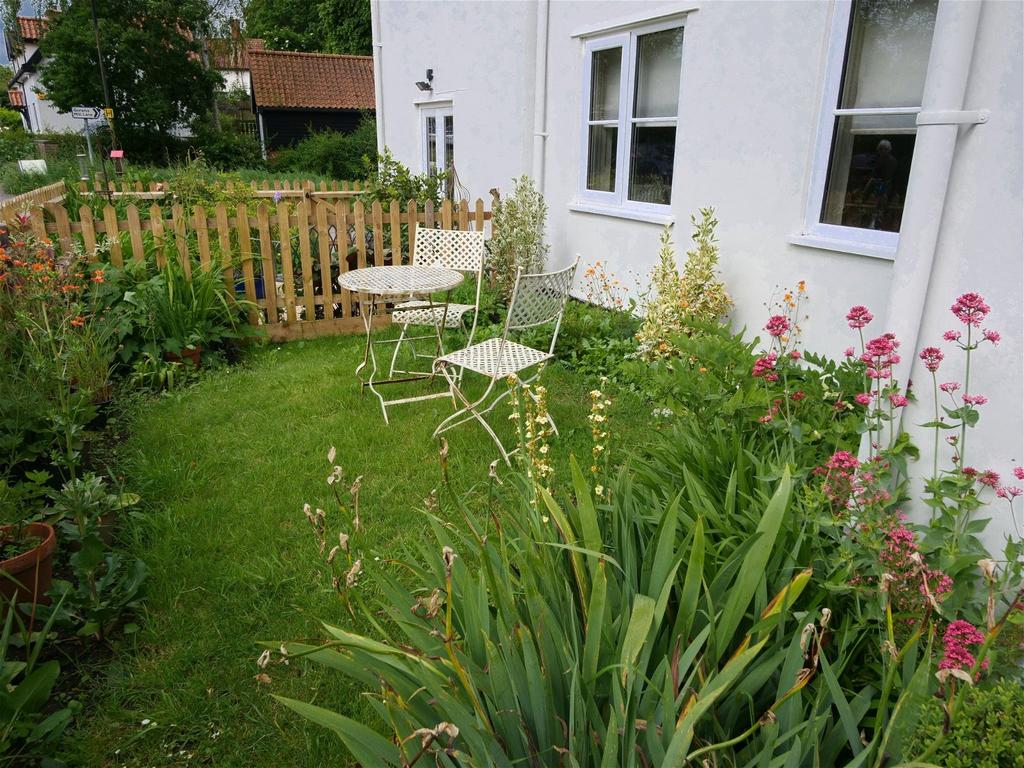 ST. MARYS COTTAGE - EXTERIOR There is a picket fence to the front with a gate leading up a garden path to the Entrance Door. To the left is a small garden with a lawned area and flower beds and to the left is further flower beds and space for wheelie bins. A small gate to the side takes you down a shingled path to the rear courtyard garden which has porcelain tiles with a built in bench seat and plenty of space for container pots.