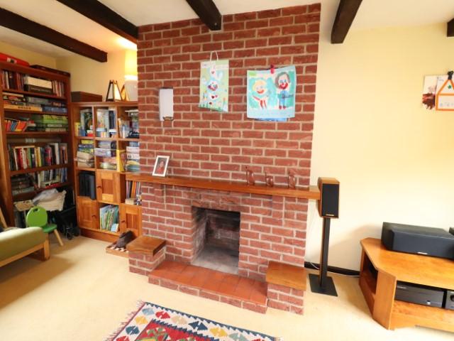 (20'10" x 12'3", 10'4" to chimney breast)(6.35m x 3.73m max, 3.15m min) East facing window to the front and west facing 7'6"(2.29m) wide Upvc patio doors to the patio and rear garden, with views over the water meadows and trees beyond. Exposed beams, with textured ceiling, and red brick deep open fireplace and chimney breast, with polished mahogany mantel, quarry tile hearth and hardwood topped raised side shelves. Two radiators, with thermostatic valves, and high level Daikin air conditioning unit. Ample power points. Fitted carpet.