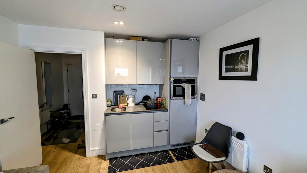 This stylish apartment is offered furnished to a very high standard and benefits from ample built-in storage, including a wardrobe with satin-white sliding doors. The property features a bright open-plan living area with a fully integrated kitchen, equipped with a combination microwave, dishwasher, fridge, and a separate washer/dryer.