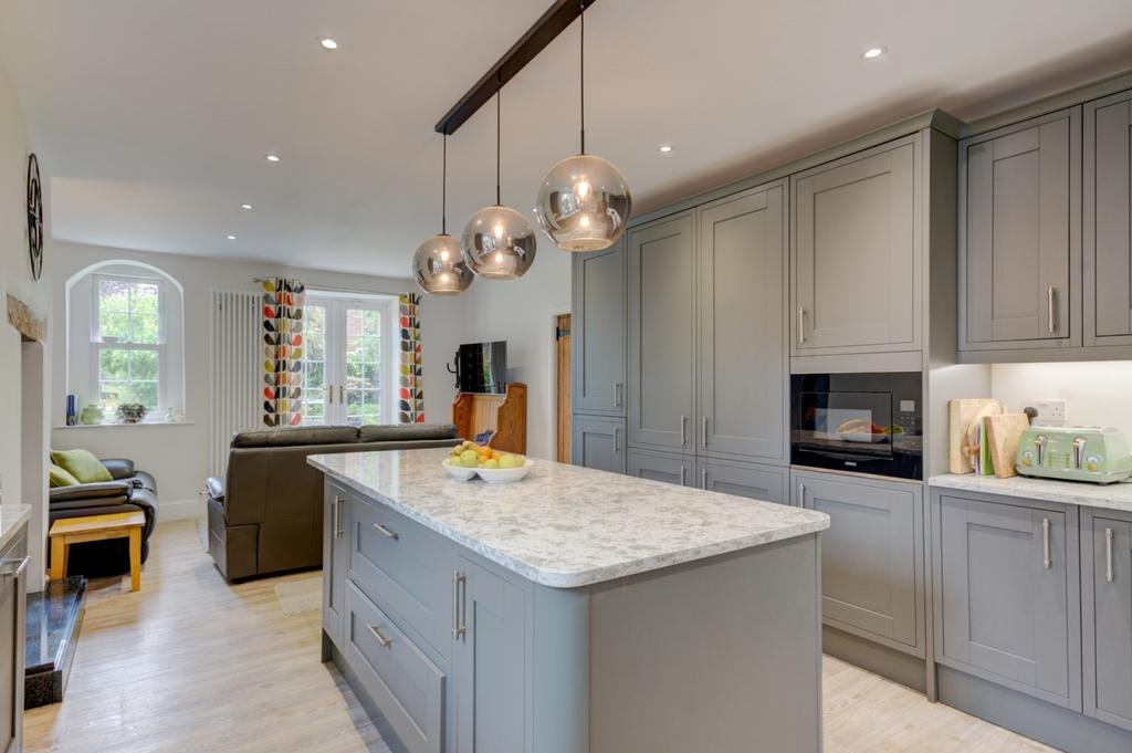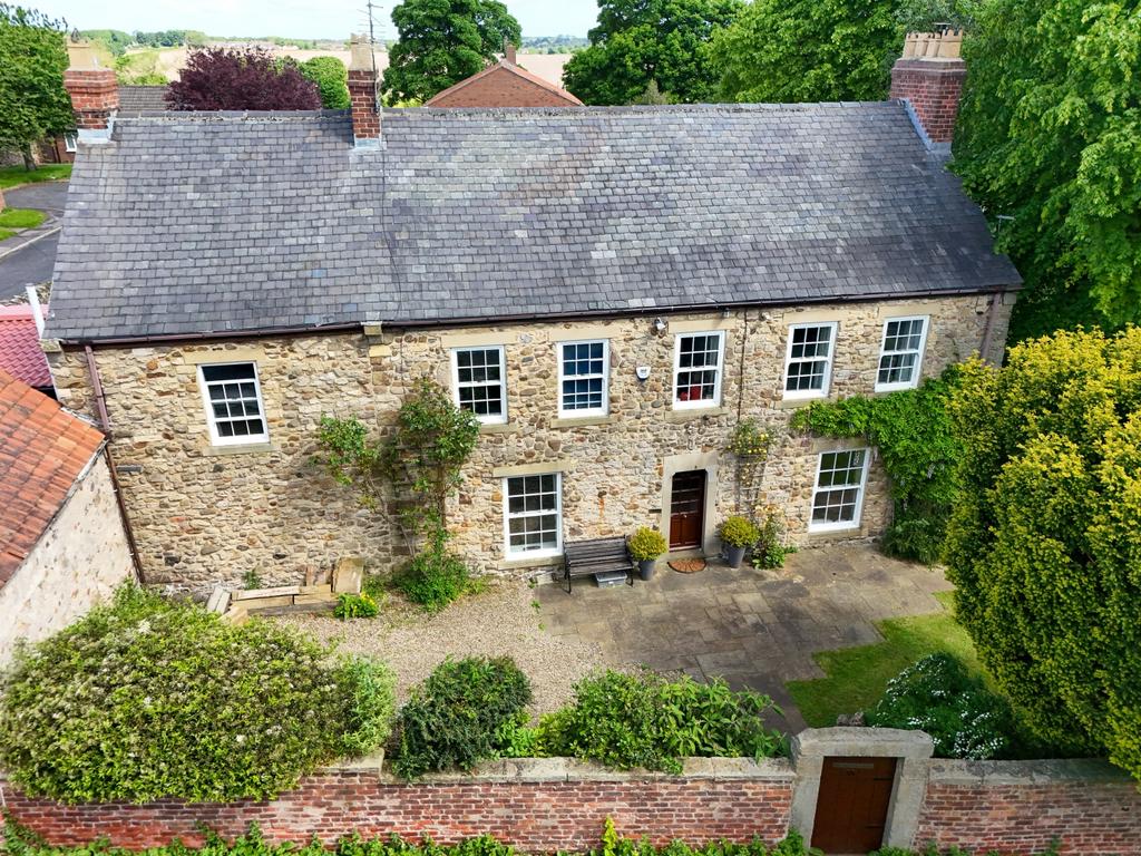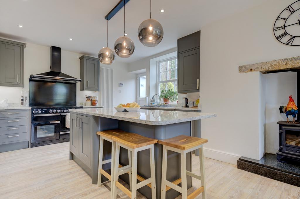 Accommodation: The extensive, well-proportioned accommodation includes on the Ground Floor: A welcoming and spacious reception hallway, with oak flooring, rustic feature walls and doors lead to the first reception room featuring original fireplace housing a roaring log burner. The second reception room is a further very generous space with cast iron fireplace overlooking the south facing courtyard. The dual access dining room is perfect for entertaining family and friends, with period fireplace, sash window and views over the wonderful rear gardens. Leading through the property we move to a useful utility room/boot room, with access doors the rear of the house and the rear patio area with a sink and Gardener's WC. A further utility area and pantry is a thoroughfare to the kitchen/breakfast room which boasts a Range cooker, Newly fitted cupboards with granite worktops, fabulous central island, integrated dishwasher and fridge freezer. The delightful informal sitting room is situated next to the kitchen and has a further stone fireplace with woodburning stove, double aspect windows to the side and also the rear gardens. First Floor: A stunning balustrade staircase leads to the galleried landing, with fabulous picture window and period walls. The first of five generous bedrooms is a truly delightful room, with windows looking over the courtyard to the front as is the second equally large bedroom across the hallway. The dressing room is thought to be the ancient vestry with potential to install a connecting door to bedroom one for ensuite conversion. Bedroom three is again a lovely double room with feature fireplace and sash window opening to stunning views across the rear gardens. Continue along the hallway to find a newly renovated, delightful family bathroom. Bedroom four is a large guest room with internal en-suite makes this property ideal for hosting. The fifth bedroom is currently used as an office with views over the garden. The Old Parsonage is approached through a gated entrance leading to a paved path as well as large double gates to the cobbled courtyard allows for multi vehicle parking. There is a stone built double garage providing further access to the gardens. At the rear of the house, which is laid to lawn, there are attractive stone and gravel terraces, and the more formal planting of a stunning cottage garden. These areas are ideal for entertaining family and friends during the warmer months. Privacy is assured by the fantastic feature walling along the boundary to the property.