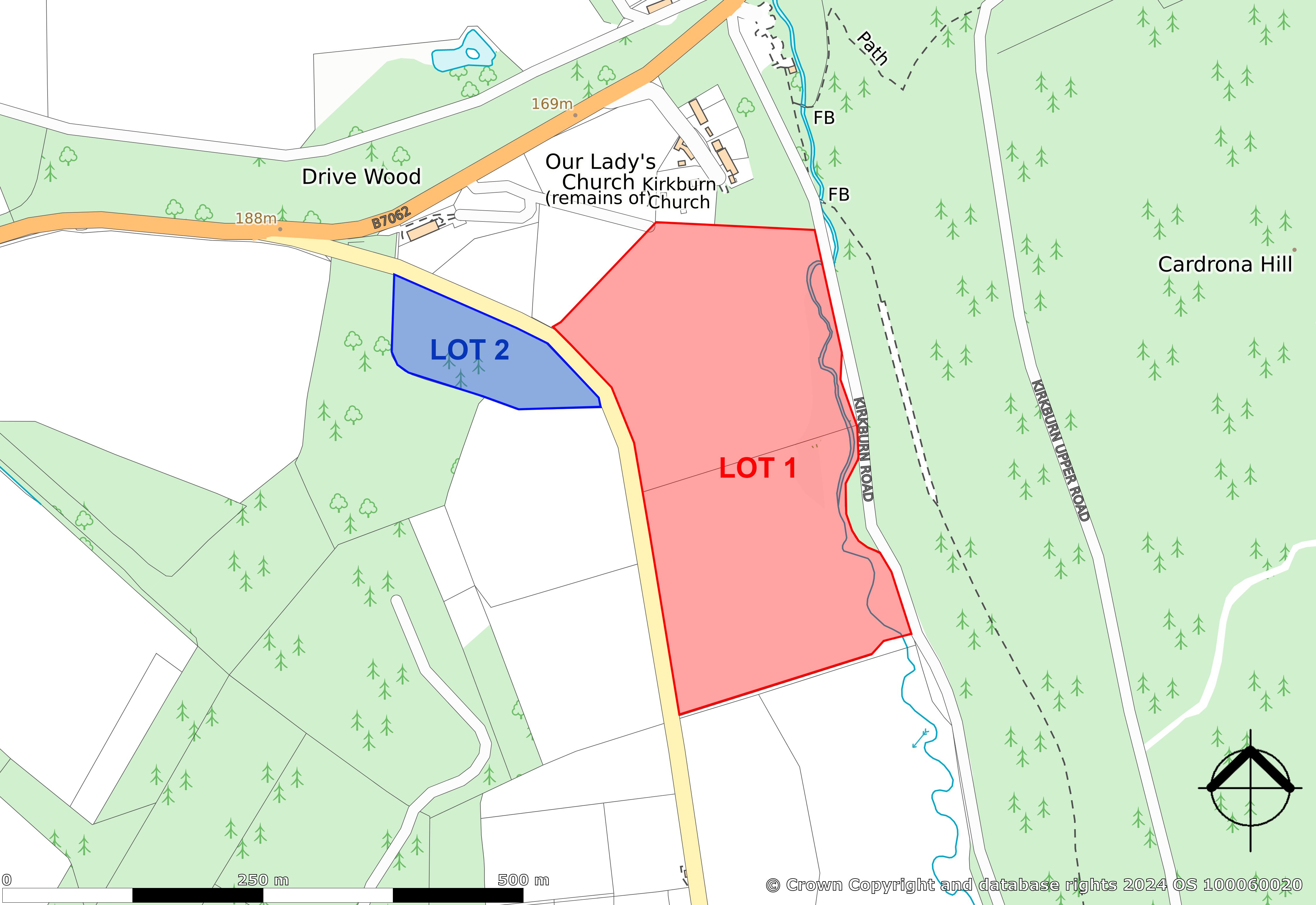 From the west end of Peebles High Street (Parish Church end), head south across Tweed Bridge on the B7062 (“Kingsmeadows Road”) and continue out of the town. Approximately two miles from the “30” limit, turn right onto a public side road (signposted “Laverlaw”). Continue uphill for approximately two hundred metres. The land is on the left.