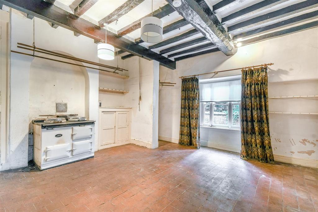 The entrance hall for the property has its original floor and gives way to the ground floor accommodation. The two reception rooms sit to either side, both spacious, dual-aspect rooms with open fires. The kitchen sits to the rear of the property with original pantile flooring, a window out to the side, built-in storage, an AGA and a utility room just off. A further room sits adjacent to the kitchen that could be utilised in a variety of ways. The ground floor is completed by a set of stairs leading down to a cellar of approximately 300 ft².