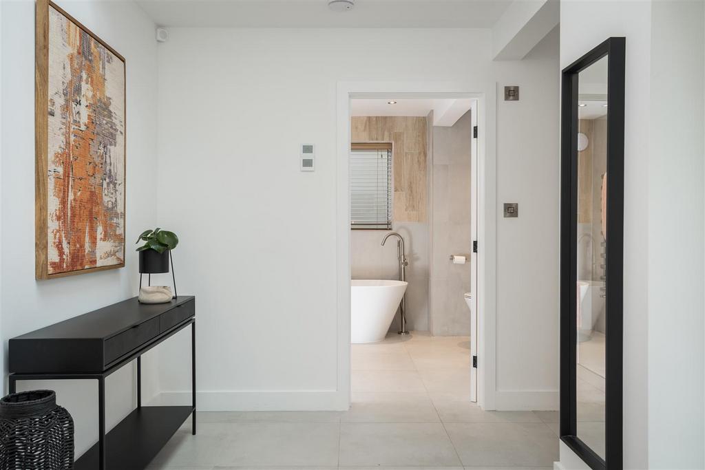The upstairs is accessed via a bespoke staircase leading up to the first floor landing which has a striking window to the rear elevation allowing for stunning views of the rear garden. There are a further two double bedrooms both with ensuites and balconies with bedroom 2 having a second 'hidden room' which is currently used as a cinema/games area.