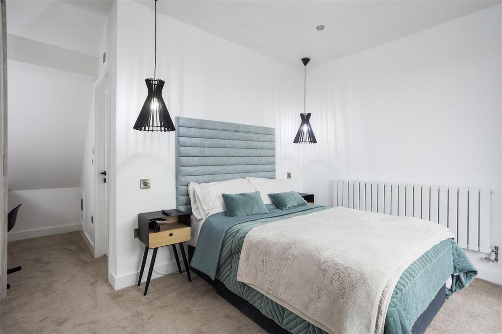 Bedroom one is located towards the front of the property and is a substantial double with bespoke fitted wardrobes, electrically operated curtains which are found throughout the house and a contemporary ensuite. The ensuite has part-tiled walls with a corner dual-head shower cubicle, bathtub, WC, wash hand basin and heated towel rail.