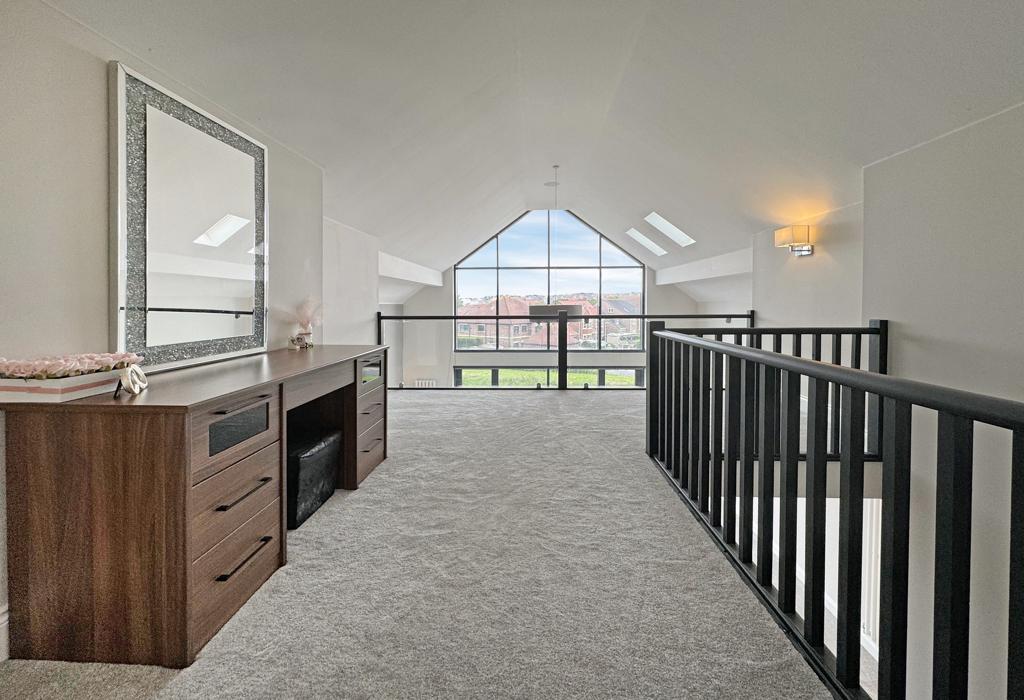 On arrival, you’re welcomed by a large multi-car driveway, manicured front lawn and a double garage with modern grey electric roller door. The garage is currently being utilised as a gym with a false wall installed, leaving a shallow storage area to the front, which can easily be removed and returned to a full garage if required. The building has outdoor wall lighting and there’s an electric car charging point.