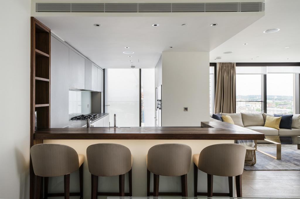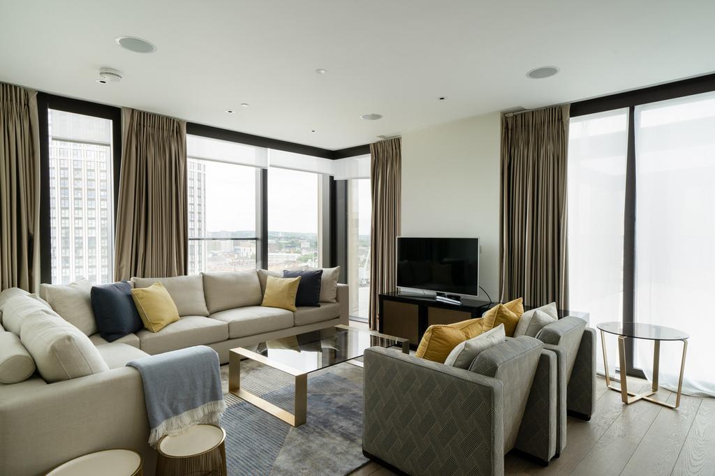 The apartment is located on the 8th and 9th floors and offers far reaching views across London. The 9th floor comprises of an open plan living room with Kitchen/dining and opens out onto the large private terrace that spans 1,094 square feet and has the added benefit of a jacuzzi.