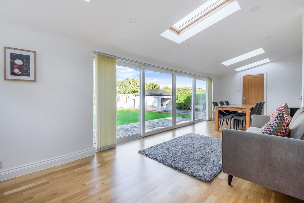 A large, bright and airy room with double glazed sliding doors opening to the private garden. Double glazed window to the side and four double glazed Velux windows. Oak flooring. Radiator