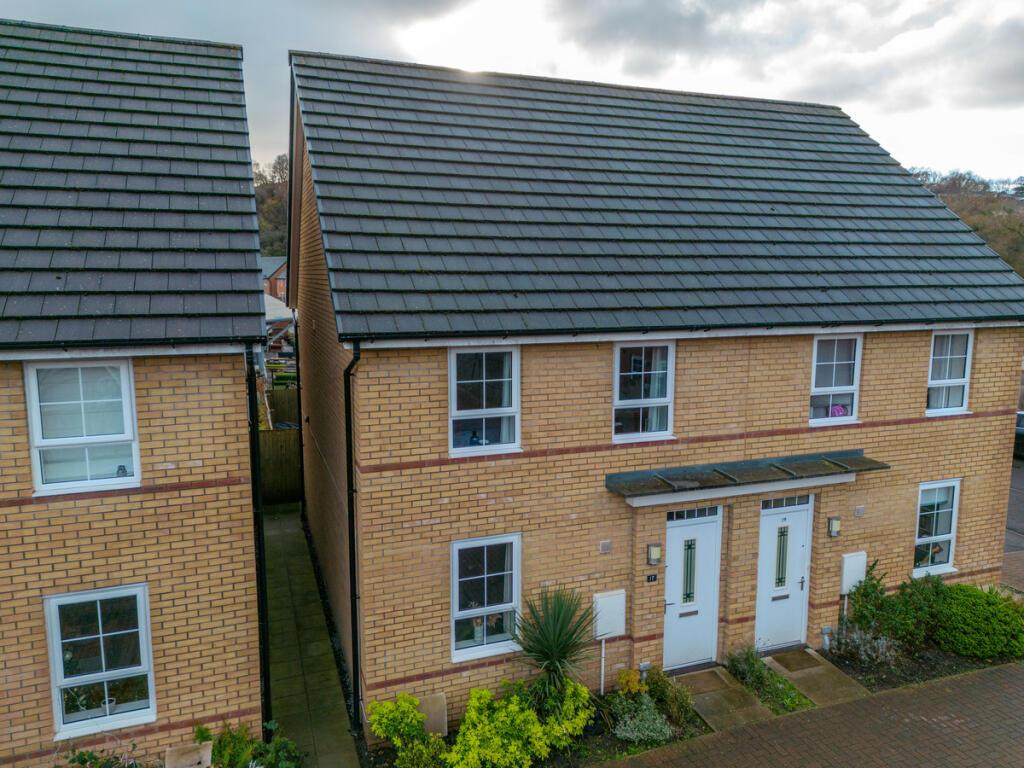 Knights Properties are very pleased to present this fantastic new build 3-bedroom semi-detached house in the sought after area of Rogerstone in very close proximity to Jubilee Park Primary School. This property is also situated at the end of a cul-de-sac so a perfect location with no passing traffic. Off the entrance hallway is a good-sized lounge with window to the front, through here onto the open plan kitchen/diner with low level lights perfect for dining, the kitchen is fully equipped with modern appliances including an integrated fridge freezer, dishwasher and washing machine. Property also benefits from a HIVE heating system. Downstairs WC/Cloakroom for family and guest convenience. The master bedroom benefits from built in storage and boasts an en-suite, complete with walk in shower. There are a further two bedrooms, a double and a single, and a good size family bathroom situated on the first floor with a 3 piece bathroom suite. Driveway for two cars. There are French doors to the secure, rear landscaped garden which is laid to lawn and has a patio area with access from the side for bikes or muddy wellies. There is also a shed and washing line present to store your gardening tools. Call now to arrange a viewing