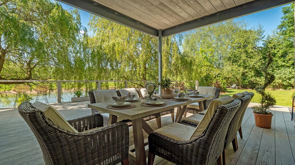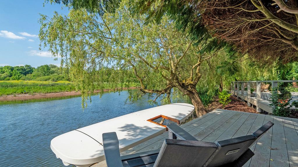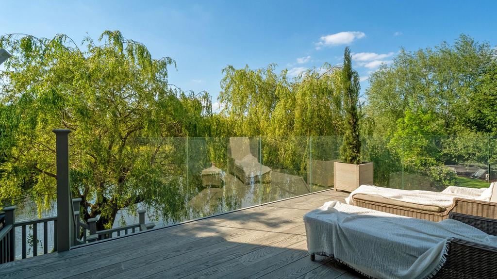 A riverside plot situated at end of a private drive leading from the exclusive Tiddington Road. The house is situated directly onto the river across from the Stratford upon Avon Local Nature Reserve. This protects and encourages local flora & fauna to thrive - otters, deer, swans, birds and mink. All of which have been seen from the property. You can even see Welcombe Hills 12th fairway and the local landmark of the obelisk in the distance.