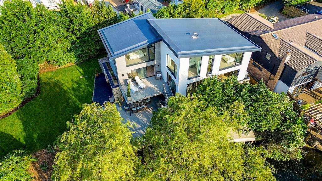 The house itself is a contemporary look and feel designed to be cohesive with modern living. A non-standard steel frame ground floor constructed property built on piles. The external is encased with chunky natural Purbeck Stonework and Douglas Fir cladding. There are many impressive features including underfloor heating with a specialised underfloor cooling system. Air source heat pump. Bluetooth ceiling speakers ground and first floor. Aluminium Glazed windows and slimline Sliders with level thresholds. The low iron (totally clear) frameless glass balustrade on the decking enables the best possible views of the river and beyond.