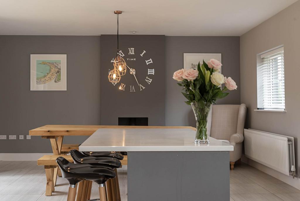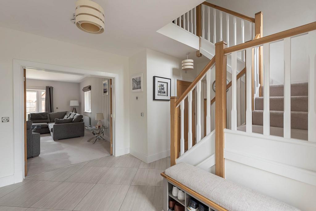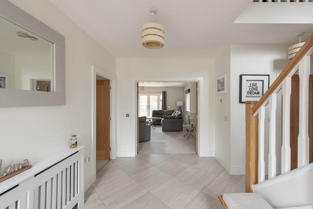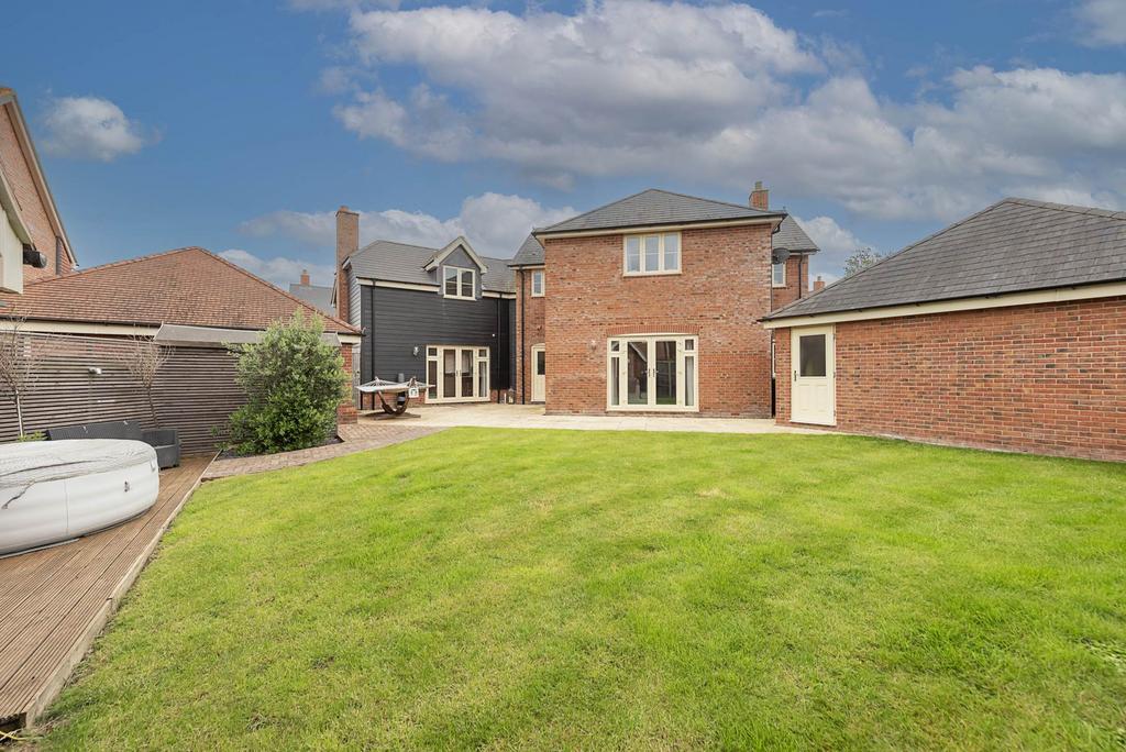 Completed in 2016, this contemporary, executive village home provides luxurious and spacious accommodation throughout, whilst enjoying the numerous benefits of a new home, including ease of maintenance, efficiency and practicality. Outside the gardens have been professionally landscaped, a manicured hedge to the front and a wonderful private garden to the back with decked area, large patio, an area laid to lawn, a shed, additional timber storage facility and even a pretty cool outside bar. There is drive way parking and a double garage with light, power and heating, currently a gym. Once inside the main house, the entrance hall is elegant, light and welcoming. The reception rooms are all generously proportioned, of particular note is the stunning kitchen/diner with its well appointed kitchen, lots of space for family time and entertaining, with a wood burning stove, ideal for cosy winter hours. The principle sitting room is again, bright and airy, an impressive dual aspect room with French doors on to the garden and an adjoining study. A versatile family room/snug is a further luxury to enjoy. Upstairs the bedrooms are all decent double rooms, the Master & Guest Suites have dressing areas too. Early viewing is recommended to appreciate all this immaculate home has to offer.