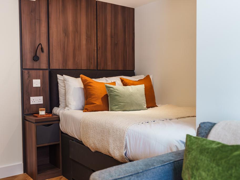 Your bedroom space boasts full-height built-in wardrobes with the comfiest double bed. Complete with a fully tiled en-suite with a deluxe rainfall shower and heated towel rail - it’s Leeds’ most exclusive apartment.