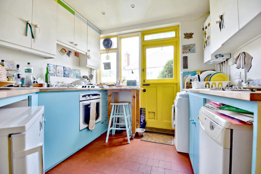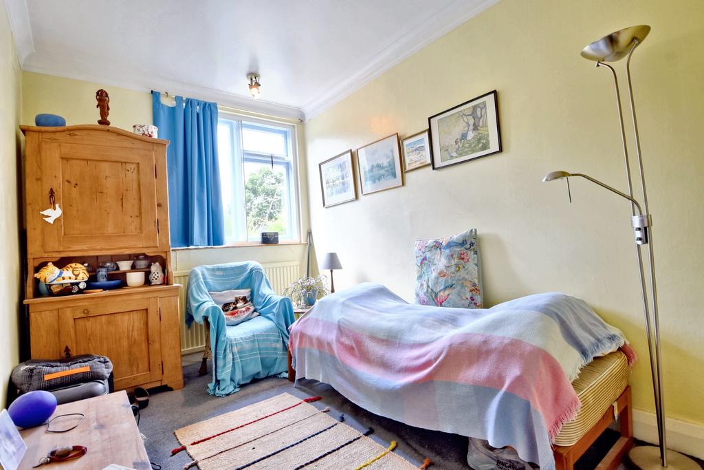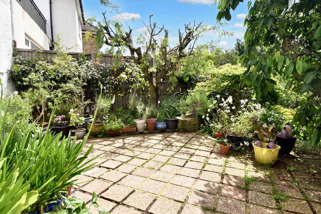 A well appointed ground floor flat requiring some updating and featuring a pretty, secluded south facing garden with freestanding swimming pool, off street parking and a garage. This characterful home has a spacious entrance hall with two large cupboards which opens on to a lovely west facing reception room with French doors to an extensive rear garden. The bright kitchen has lots of potential and enjoys separate side access. There are two well proportioned bedrooms and a large bathroom. This charming property presents a purchaser with an ideal opportunity to create a delightful home designed to their own style and specification.