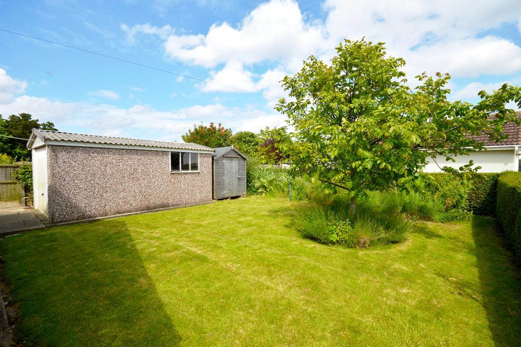 About Amberlaines…… This detached bungalow is estimated to date back to the 1970s and has traditional brick-faced cavity walls beneath a pitched timber roof structure covered in concrete interlocking tiles. A single-skin lean-to was added for utility purposes. Heating is provided by an LPG central heating system with a wall-mounted condensing combination boiler and there is also a cast iron log burning stove in the dining lounge. The windows are uPVC double glazed and the fascia boards are complementary white uPVC. The detached garage is of concrete sectional construction. The property is conveniently located just a few yards from the local village shop and there are seasonal local facilities, whilst direct access to the beach is also just a few yards away.