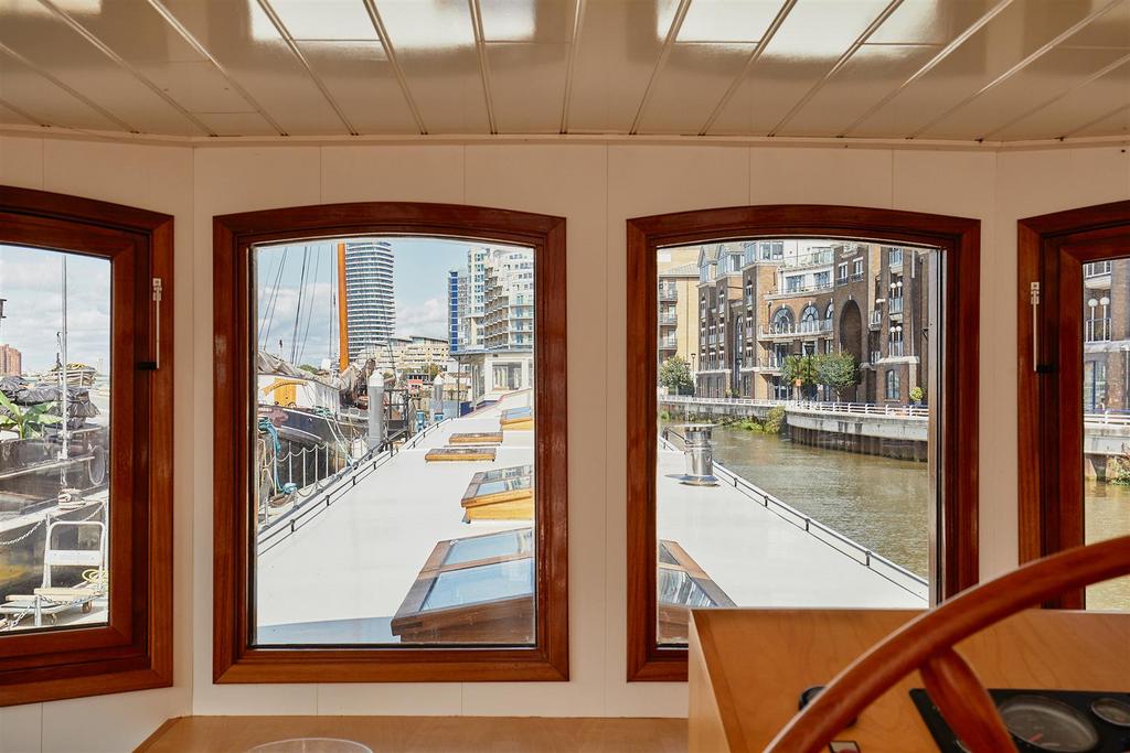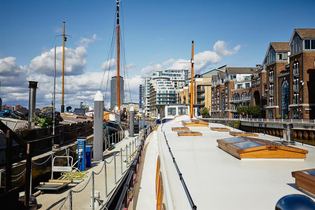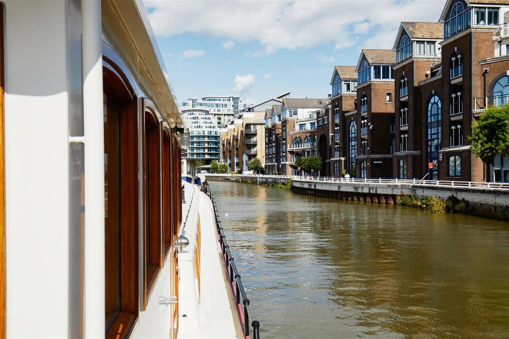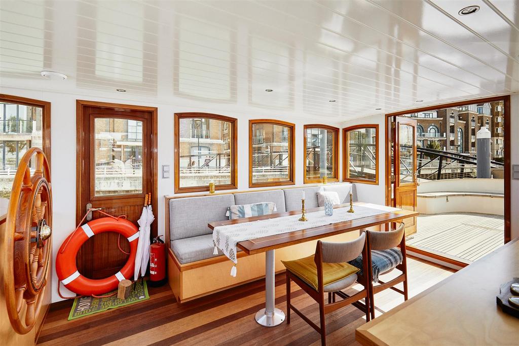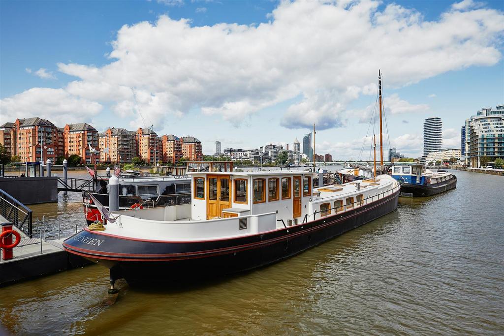 *VESSEL ONLY*. It was designed by Jan Visser, a Dutch marine architect and by the current owners. It was built by SRF in Harlingen, completed in September 2016 and sailed over the North Sea to its present mooring. It is designed with a Scandinavian influence and with no expense spared on the finish. It is a fine example of a fully functioning, luxury floating home, which is also quite capable of cruising the European waterways. The barge is almost 30m long with 1,276 sq. ft. of exceptional accommodation. The sheer size and considered configuration results in a very versatile vessel which would serve a multitude of purposes. The boiler and water pump were recently serviced and the hull inspected. The vessel also has the TRIWV certificate. The lower deck accommodation comprises 2 large double bedrooms, both with en-suite bathrooms, large cupboards and dressing tables. There is a 3rd bedroom with two bunk beds, which could be adapted to an office. There is also a separate WC and a well-appointed utility room with Miele washing machine and separate tumble dryer. The sitting room has an abundance of windows and is therefore very light. The living area has a wooden floor with plenty of hatches for storage and also many deep cupboards. There is an underfloor wine cellar, a wood burning stove and a pop-up TV cabinet. It is open plan to the bespoke fitted kitchen which has top of the range integrated Miele appliances, including fridge freezer, dishwasher, oven and hob. Access to the spacious engine room is through the aft bedroom. This contains the diesel combi boiler and Mercedes V6 250hp engine. On the upper deck there is a large wheelhouse which enjoys a 360 degree panorama and is a stylish entertaining and dining space with wonderful views of the river. This opens out onto the substantial rear deck which has teak decking and a good sized bench seat with built in storage around the stern of the vessel.
