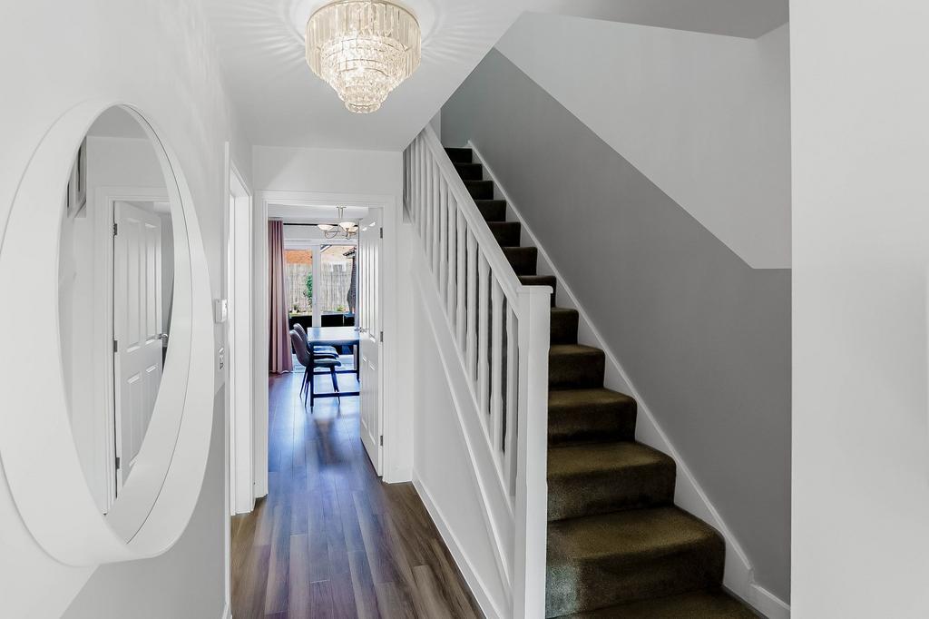 Upstairs, there are three bedrooms including the main bedroom with ensuite as well as a family bathroom.