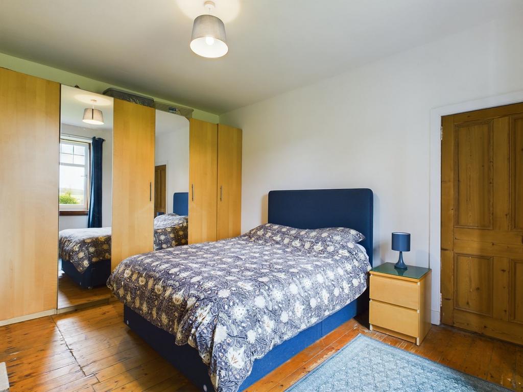 A generous double room on the ground floor that benefits from large wall to wall wardrobes with sliding doors providing excellent storage. The window with deep sill looks over the front garden and offers super views. There is a small functioning wood burning stove set in tiled fire surround and the floor is the original wooden boards.