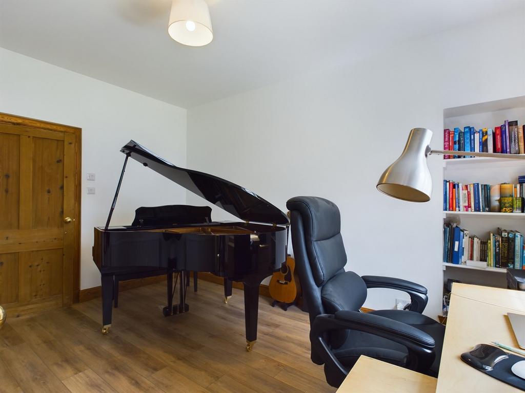 This is a spacious double room on the ground floor with stunning views of the garden and surrounding scenery, currently used as a music room. This would also make a great formal dining room, second sitting room or a work from home office area. The arched recessed shelving offers space for display items and books. Fresh white decor and has a modern wood effect flooring.
