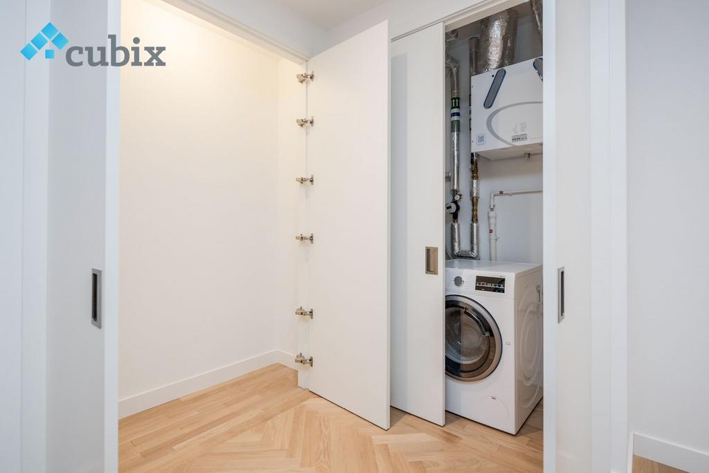 Upon entering, you'll be greeted by solid wood flooring throughout the large open plan living and kitchen space. The kitchen boasts integrated appliances such as a dishwasher and induction hobs, perfect for both cooking and entertaining. The spacious double bedroom features a floor-to-ceiling wardrobe, providing ample storage space.