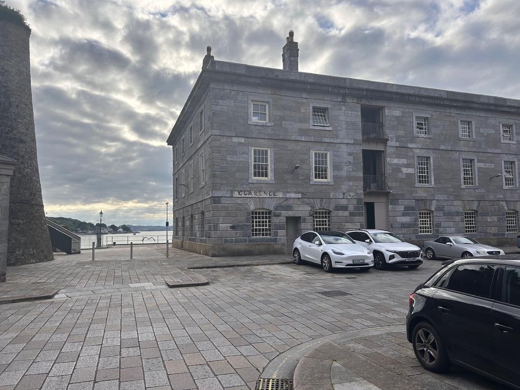 A stunning ground floor property, situated in the imposing Clarence Building, within the Royal William Yard. The property has impressive communal areas and opens into a spacious hallway. The property is largely open plan, the hallway opening into a large lounge and dining area, partitioned from the kitchen by a glass screen. The kitchen is well equipped with all major appliances and has sumptuous storage with ample worktop space. On the living room side of the dividing screen there is a breakfast bar and stools. The living area and bedroom windows are are roughly west facing, towards the River Tamar and into Cornwall. There is built in storage within the hallway and bedroom areas. The bathroom is spacious with modern fittings, a bath with screen and shower over and wall-hung basin and WC.