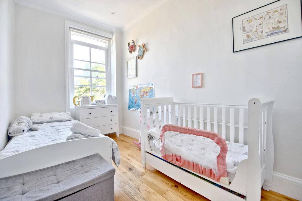 Located moments from Hampstead Heath in a quiet residential street in the heart of Dartmouth Park is this charming first floor converted flat. This characterful property enjoys well planned living space with lots of natural light including a spacious reception room to the rear with a huge floor to ceiling sash window overlooking surrounding gardens. To the front of the property are two double bedrooms, the larger of which has French doors opening on to a west facing balcony. An excellent selection of popular pubs, restaurants and shops are nearby at Swains Lane and Kentish Town and convenient transport links provide easy access to the West End & City.