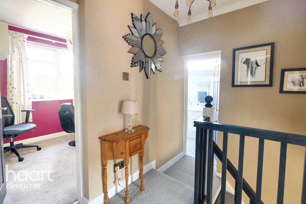 Stairs rising from the ground floor, loft hatch, doors to further accommodation.